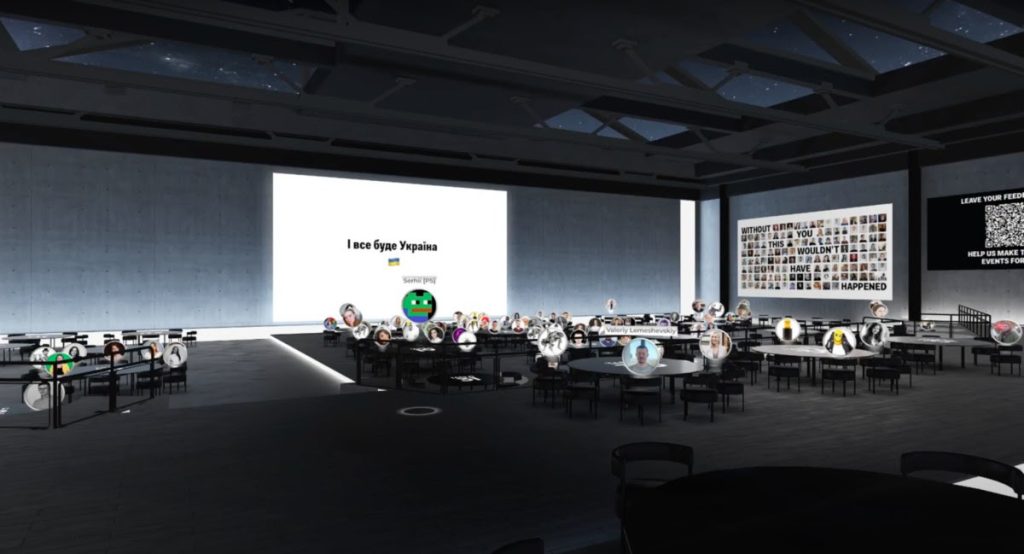 The Synchro Day, a special event traditional for Sergey Tokarev’s colleagues, lasted three hours. To keep people’s attention during all this time, they should have prepared thoroughly. A day before the event, metaverse platform employees sent guides to the event participants and held rehearsals with speakers. For Synchro Day, the company prefers to involve its team instead of professional event-makers. Just like at regular offline meetings, you need to prepare a script and think about possible challenges. “The peculiarity of holding an event in the metaverse is that the host should explain and remind things that are not relevant for offline events. They need help with moving through space, communicating, help speakers on how to use functional part of the metaverse,” says Oleksandra Borodina, the company’s creative communications director. Apart from that, there can happen specific issues that we do not encounter in real life, for instance, a speaker may unexpectedly “freeze” if there is no Internet connection.